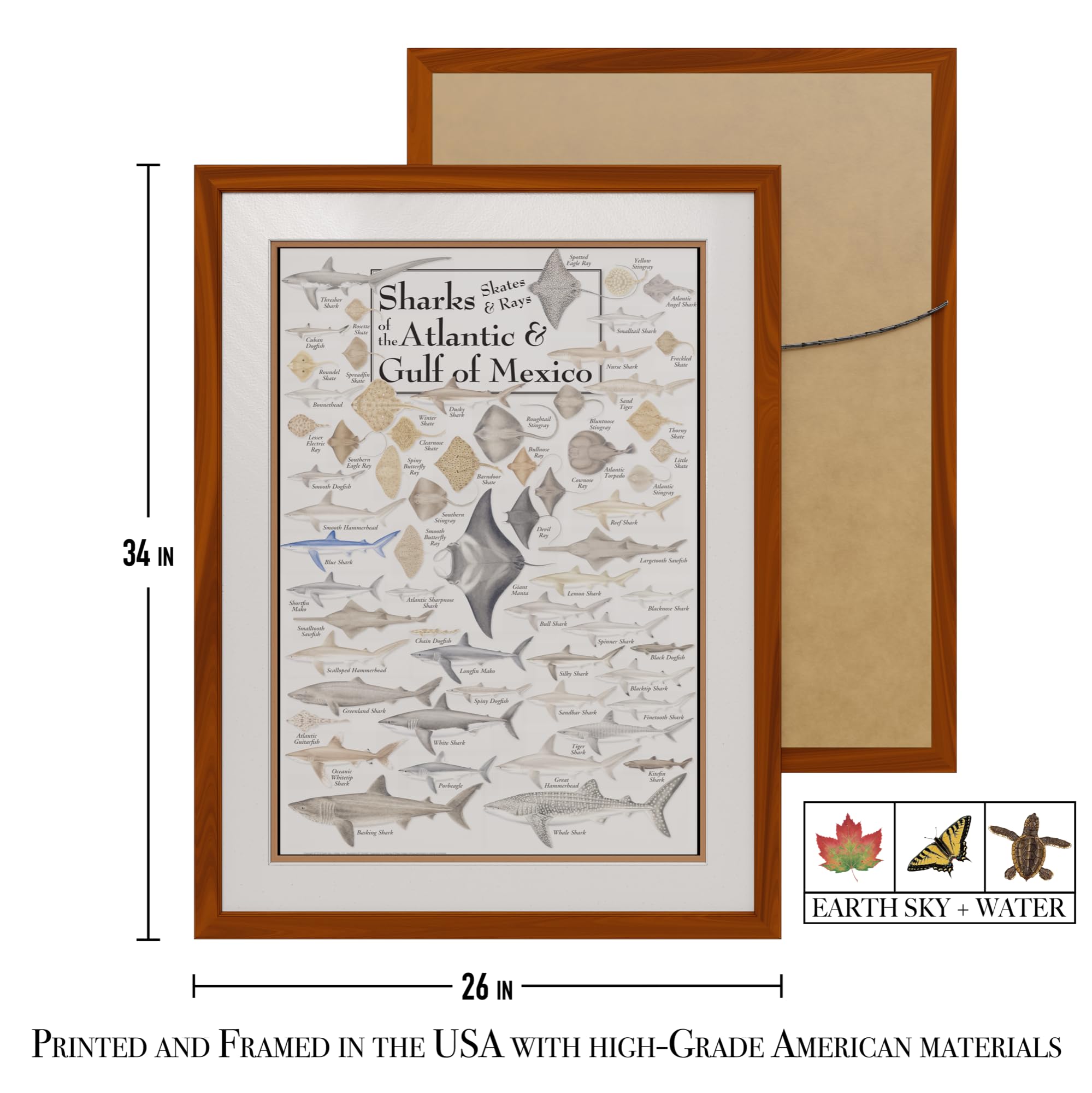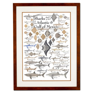 Earth Sky + Water - Sharks, Skates, and Rays of the Atlantic and Gulf of Mexico - Double-matted Posters with Honey Frame