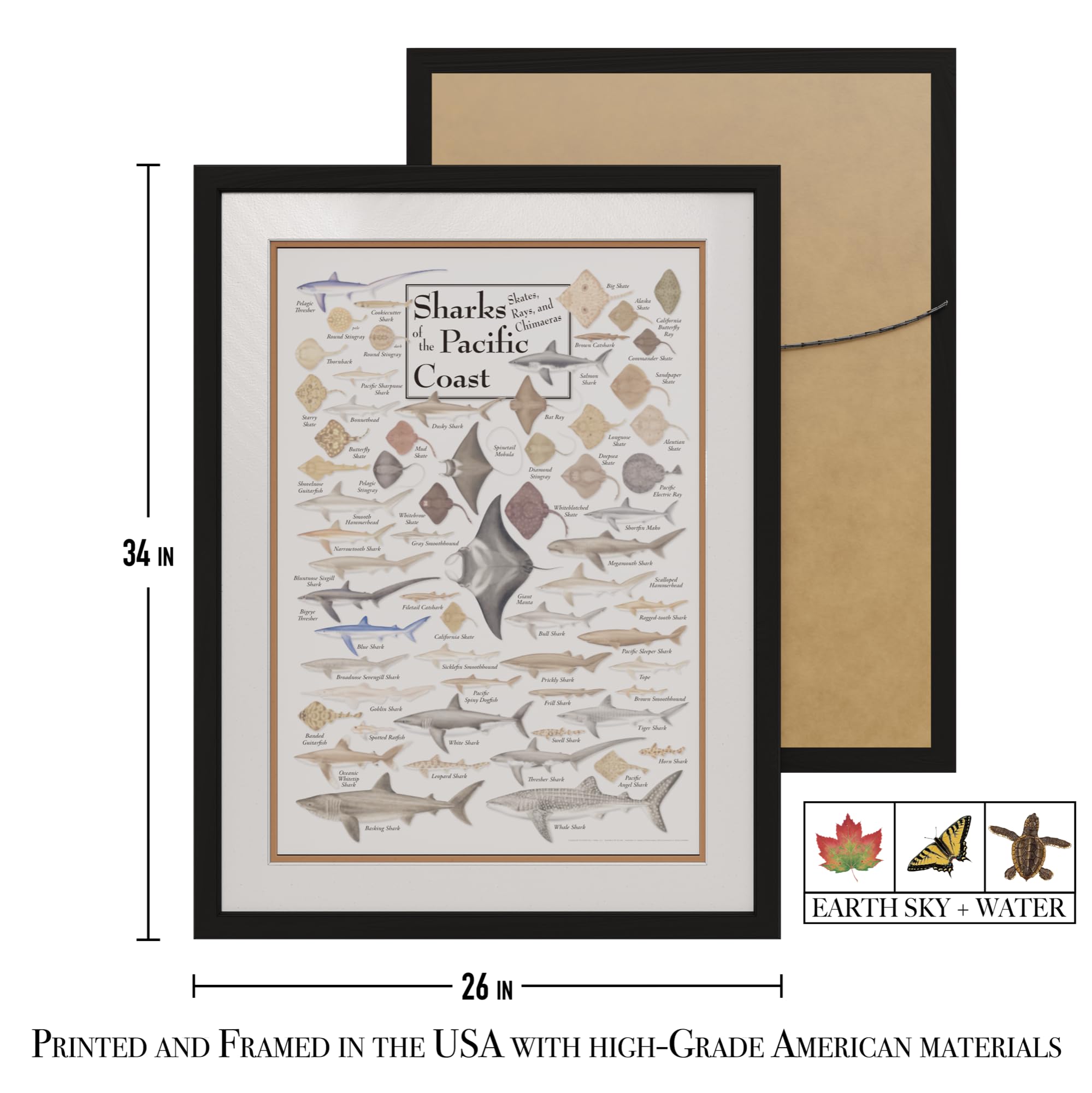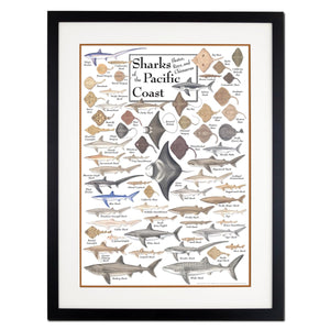 Earth Sky + Water - Sharks, Skates, Rays & Chimaeras of the Pacific Coast - Double-matted Posters with Black Frame