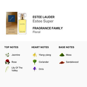 - ESTEE SUPER features lily, tuberose, jasmine, and ylang-ylang
