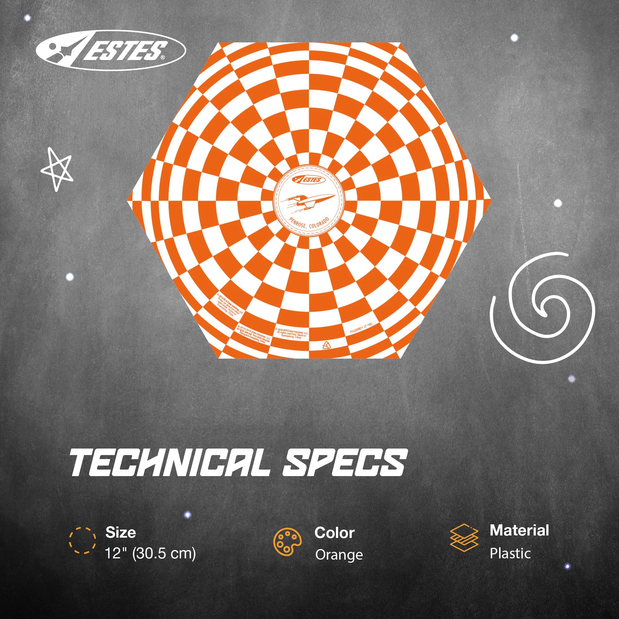 - DURABLE & LIGHTWEIGHT DESIGN: Made from tough, thin plastic, our Printed Parachute is crafted to open smoothly. Its compact 12-inch diameter is designed to fit smaller rocket airframes, while its high-contrast pattern enhances visibility during descent and recovery. With this accessory, you can easily track and retrieve your rocket after launch for continued outdoor experiments and STEM educational activities.