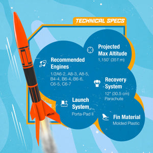 altitude1,100' (335m)Rocket weight1.2 oz. (34 g)Dimensions12.3 x 0.98" (H x