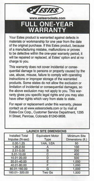 The Estes C6-3 engine delivers dependable high-thrust launches with a shorter 3-second delay, perfect for medium-sized rockets that need quick recovery system deployment. With a total impulse of 10.00 N-sec, it offers a satisfying balance of height, power, and control. Each pack includes three engines, starters, and plugs—everything you need to power your next flight. Ideal for both beginners and experienced flyers, the C6-3 is a versatile choice for repeatable, thrilling launches.