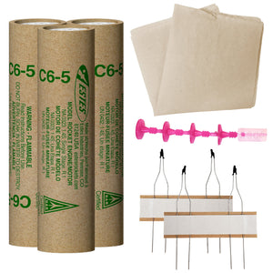 - Includes: - 3 C6-5 Engines - 4 Starters - 4 Starter Plugs - 12 Sheets of Recovery Wadding
