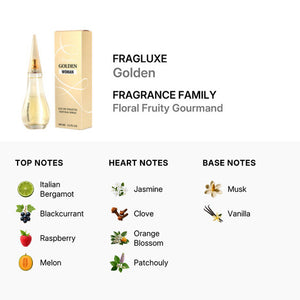 - FRAGLUXE GOLDEN WOMAN Eau de Toilette for Women 3.3 oz by Fragluxe is a floral fruity fragrance