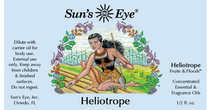 Heliotrope Oil, earthy and floral, is traditionally associated with healing and wealth.Suns Eye oils are highly concentrated blends of essential and fragrance oils that are synthesized from a wide variety of ingredients. Our oils are petroleum-free, paraben-free, DBP and DEHP-free, as well as veganmeaning no animal products or testing. Suns Eye oils can be used to scent your home, car, or body. We offer aromatherapy lockets, bracelets, diffusers, and aromalamps for diffusing our oils. Although our oils are body grade, they should be diluted with a carrier oil such as Jojoba or Grapeseed oil for body use.