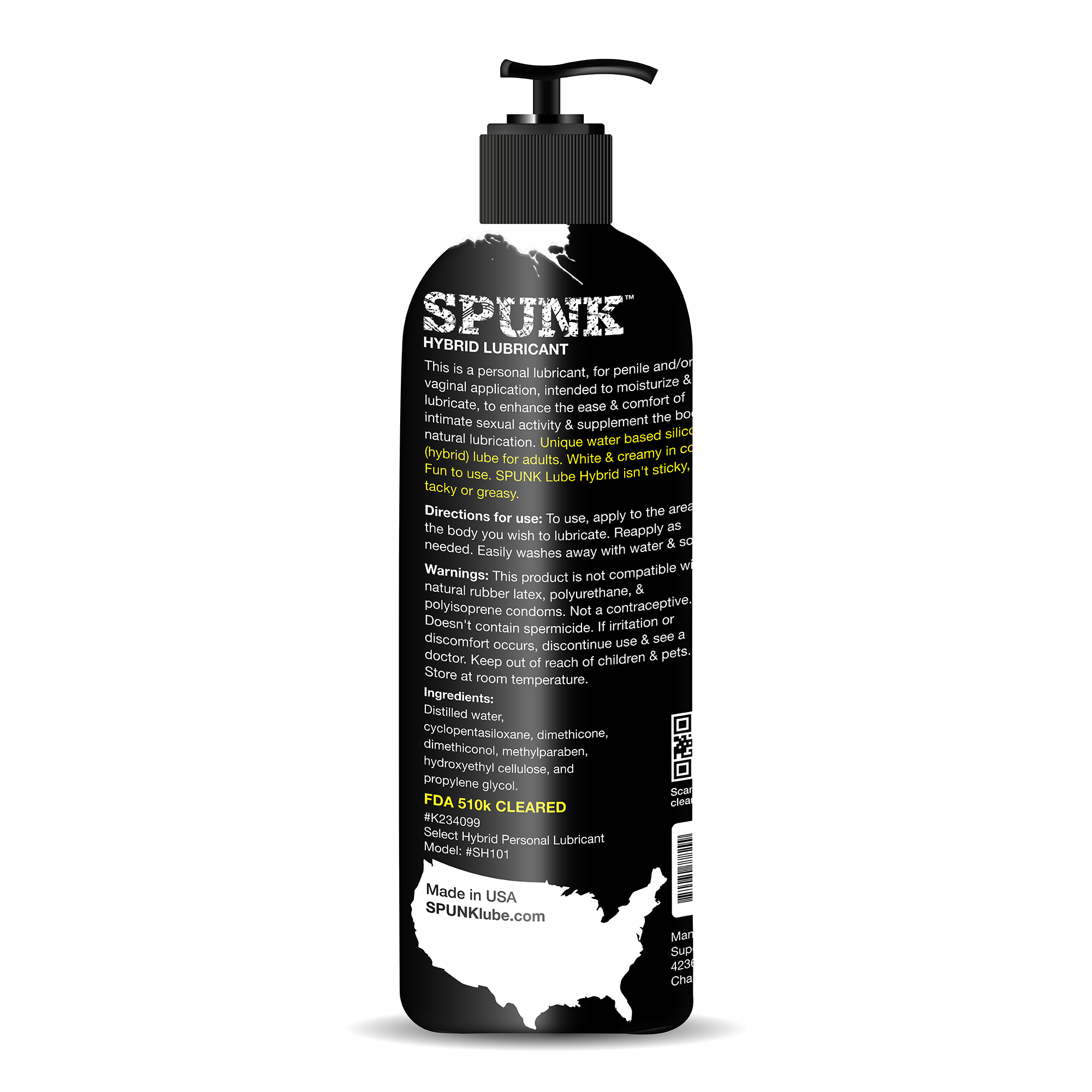 SPUNK Lube Hybrid Personal Lubricant - Water & Silicone Based, Safe for Toys & Condoms, 16 Fl Oz