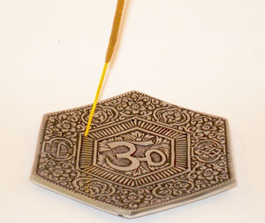 Om Incense Burner - Recycled Aluminum - Incense Sticks-Cones - 4.5 Inches