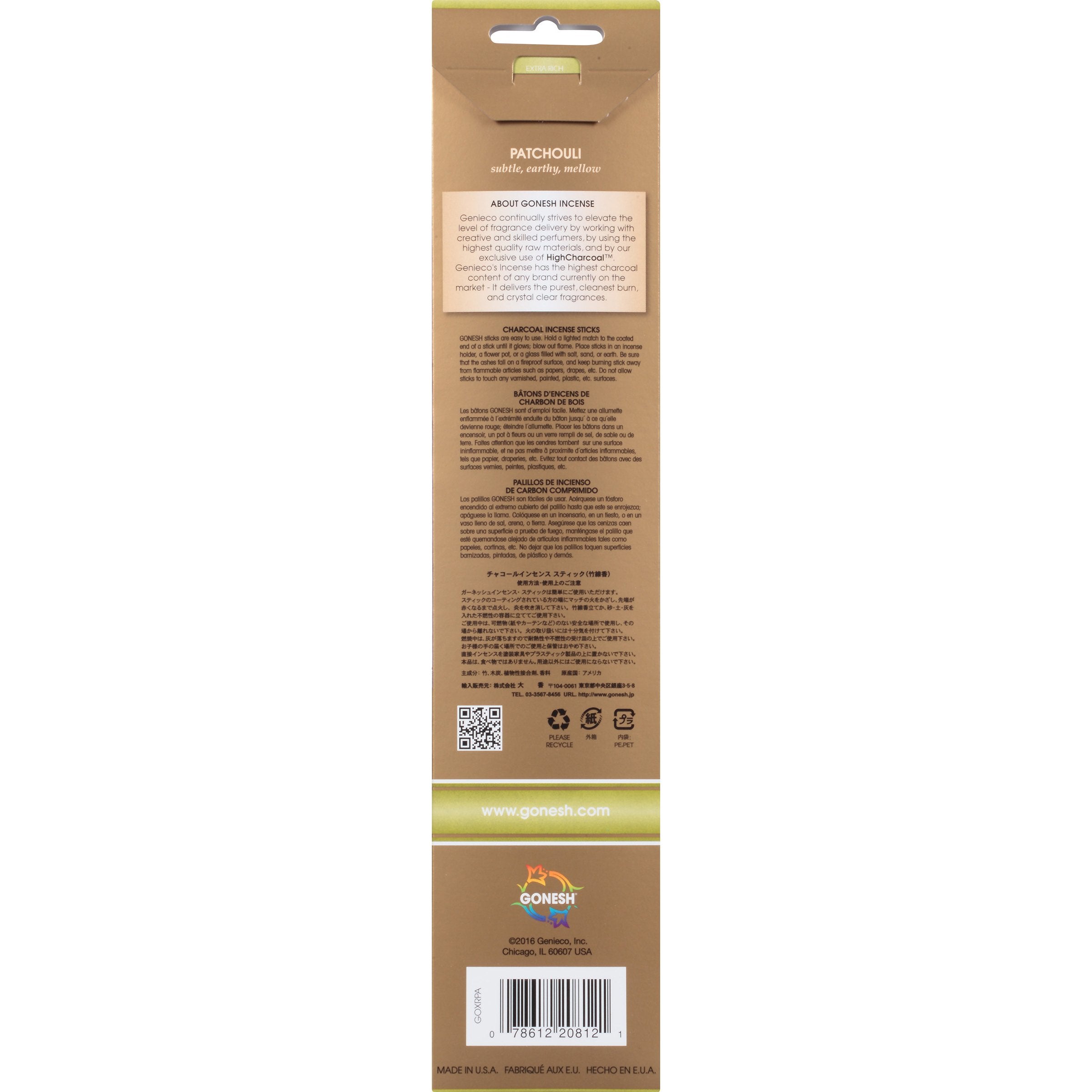 Sticks Extra Rich Collection Patchouli from Gonesh. Gonesh by Genieco