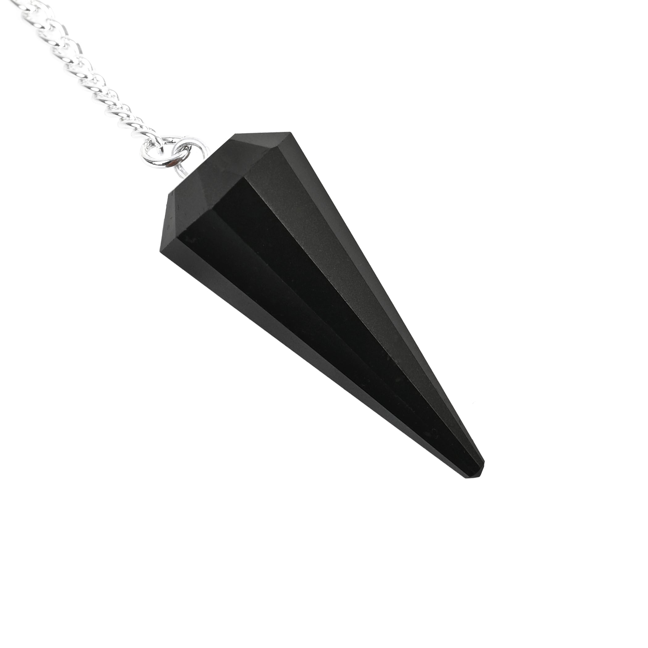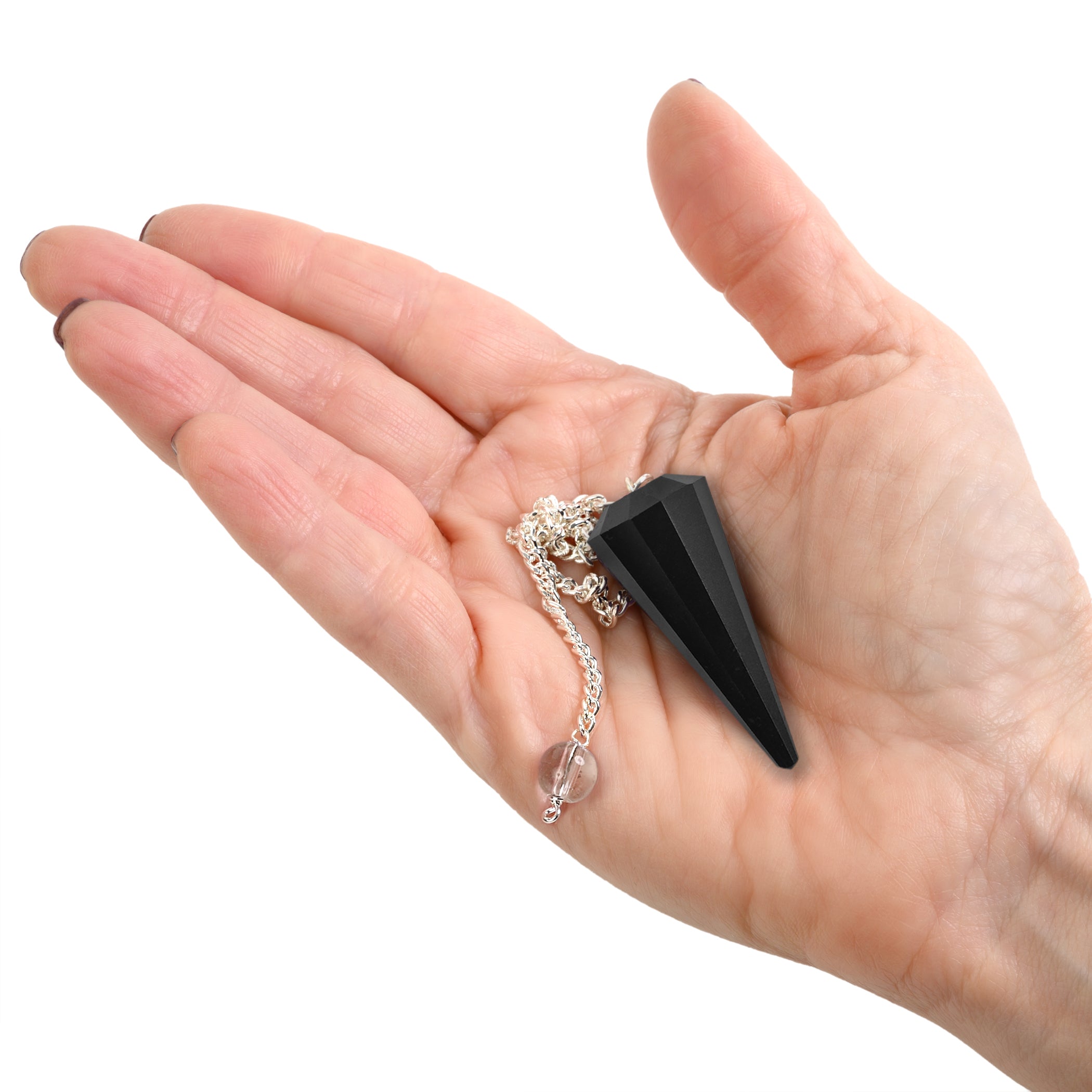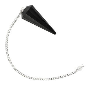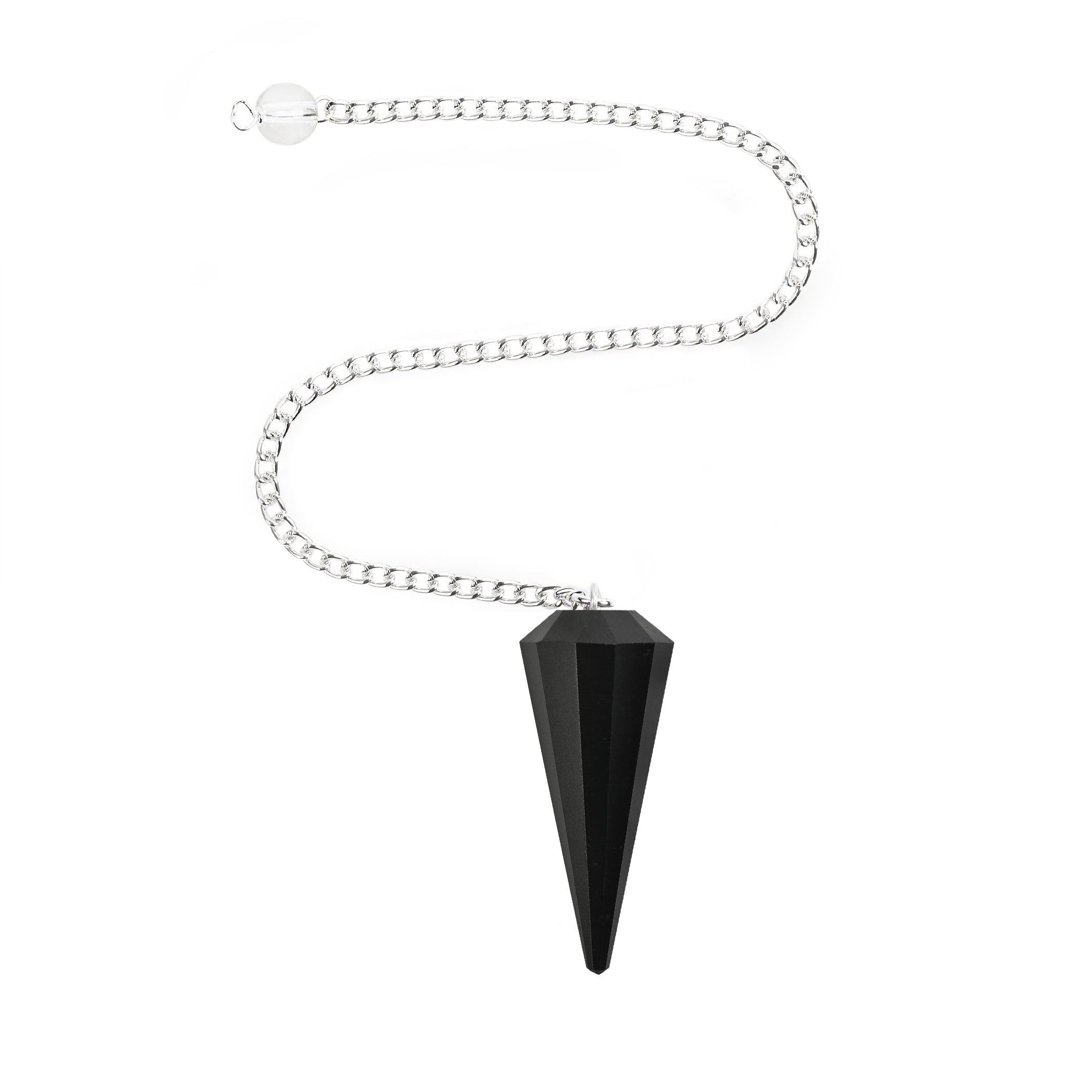General Gemstone Black Onyx Pendulum 12-Faceted with Chain and Black Pouch