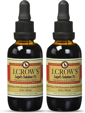 - PREMIUM IODINE SOLUTION: J.CROWS Lugols Iodine 2 percent and potassium iodide solution is derived from 320-million-year-old natural brine deposits in the Western USA, offering a unique & high-quality iodine source. A traditional chemical mixture in use since 1837