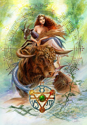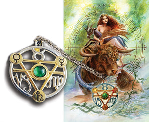 Product Code: ET1 The alchemical symbol for Earth is embellished with the Earth Zodiac signs (Taurus, Virgo & Capricorn) and Planetary Sigils (Mercury, Saturn, Venus) to invoke stability, wisdom, strength and growth. Elemental Talismans on matching zodiac greetings cards by Briar make the perfect birthday gifts! Each pendant is made of zinc alloy and includes a 16" chain. The corresponding Elemental Zodiac Greeting Card is approximately 6.75" x 4.75" (170mm x 120mm) and includes a matching envelope. Cards are individually cello wrapped.