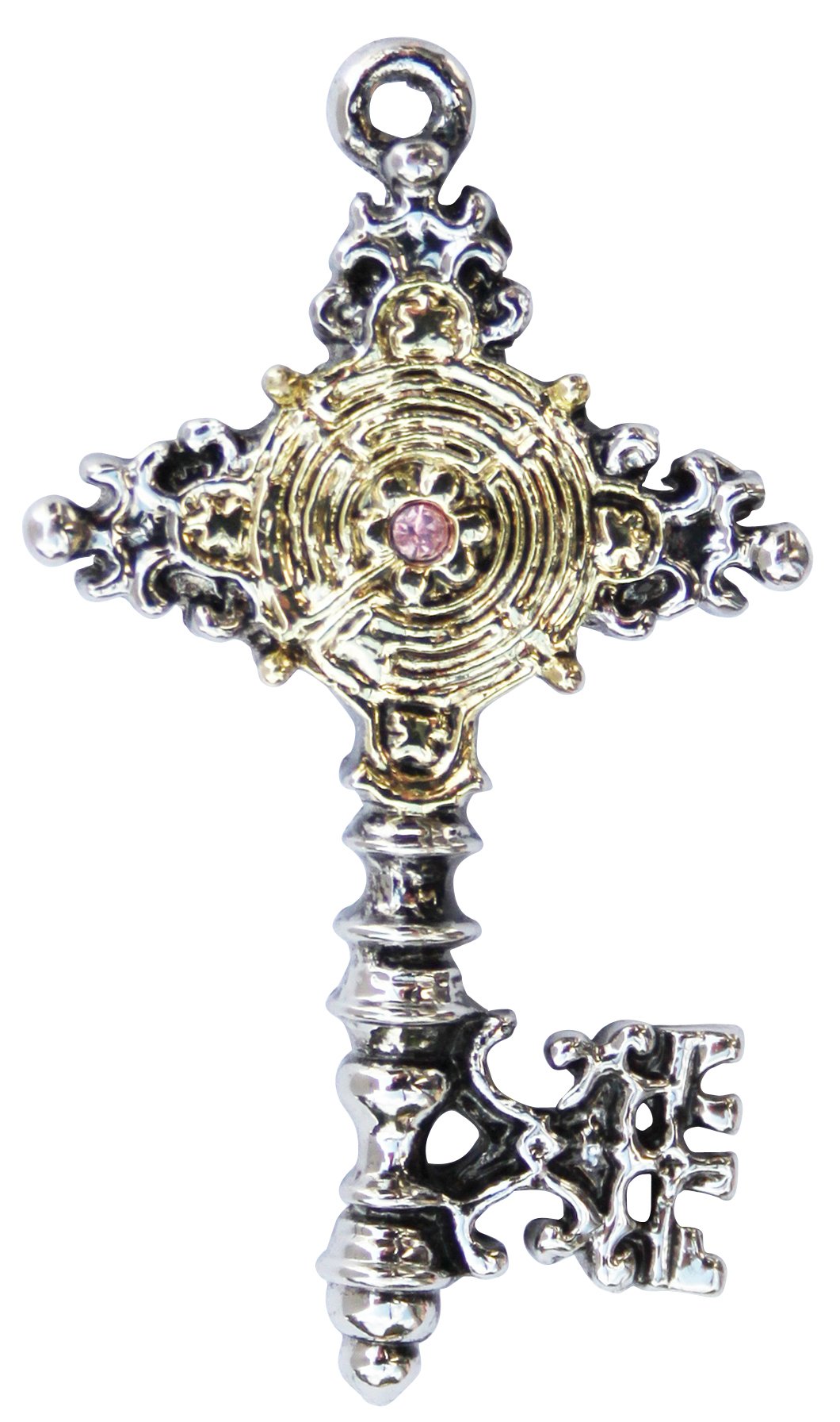 Product Code: LT08 Old Sarum, the earliest settlement of Salisbury in England, lies near the stone circles of Stonehenge and Avebury. The beautiful Old Sarum Cypher holds the collective knowledge of past civilizations and is a hidden labyrinth with wisdom of the ancestors at its heart. Made from polished pewter with gold, enamel, and crystal accents, this enchanting pendant comes with a chain and leaflet in a gold satin pouch. Designed by fantasy artist BRIAR. Approximate size: 1" x 1.5