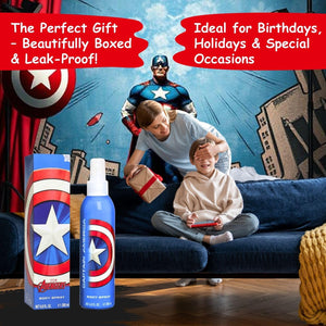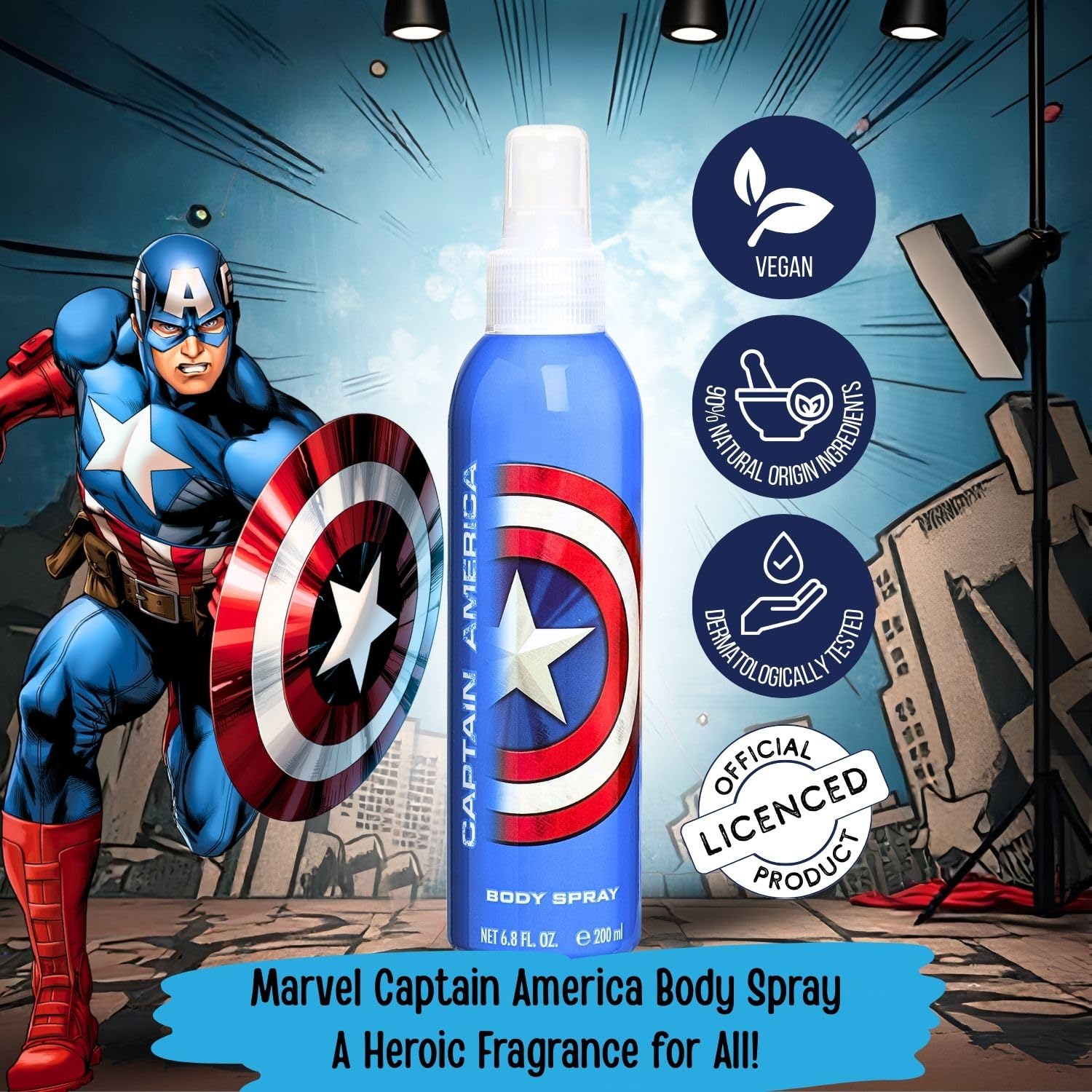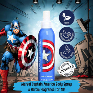 Unleash your inner hero with Marvel Men's Captain America Body Spray. Designed