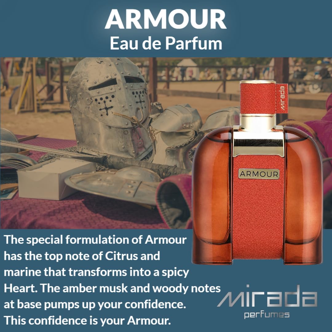 Home MIRADA Armour Eau de Parfum Spray for Men, 3.4 Fl Oz (100 mL)
