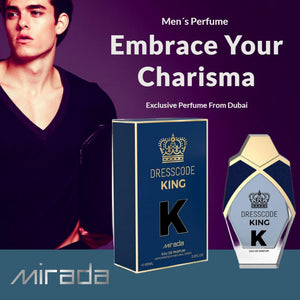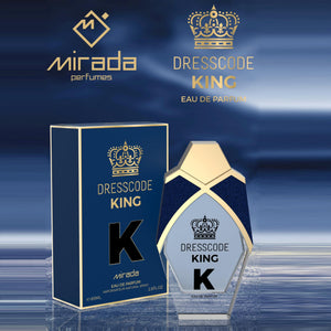 MIRADA Dresscode King Eau de Parfum Spray for Men (2.8 fl oz / 100 mL) is a fresh-spicy woody fragrance that opens bright and zesty with a clean, energetic feel, transitions into an aromatic heart with a refined spicy edge, and settles into a structured woody base that reads confident, modern, and signature-worthy.