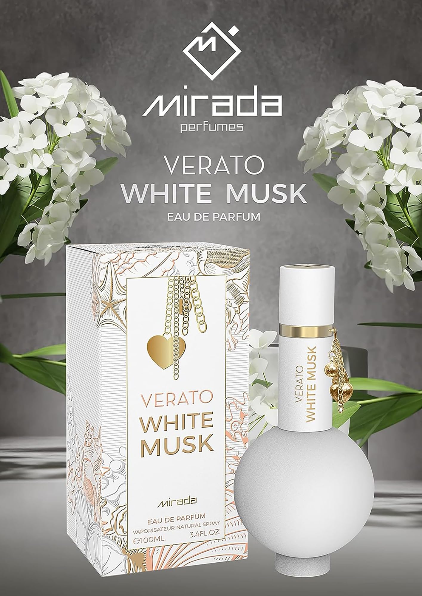 MIRADA Verato White Musk Eau de Parfum Spray for Women, 3.4 Fl Oz (100 mL)