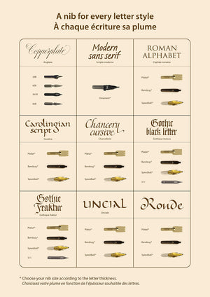 - Square nibs for rounded writing (Roman, Italic, Gothic), with an ink reservoir on the top. Unique for the sharpness of its angles and the precision of its upstrokes, the Bandzug nib gives incomparable Gothic letters