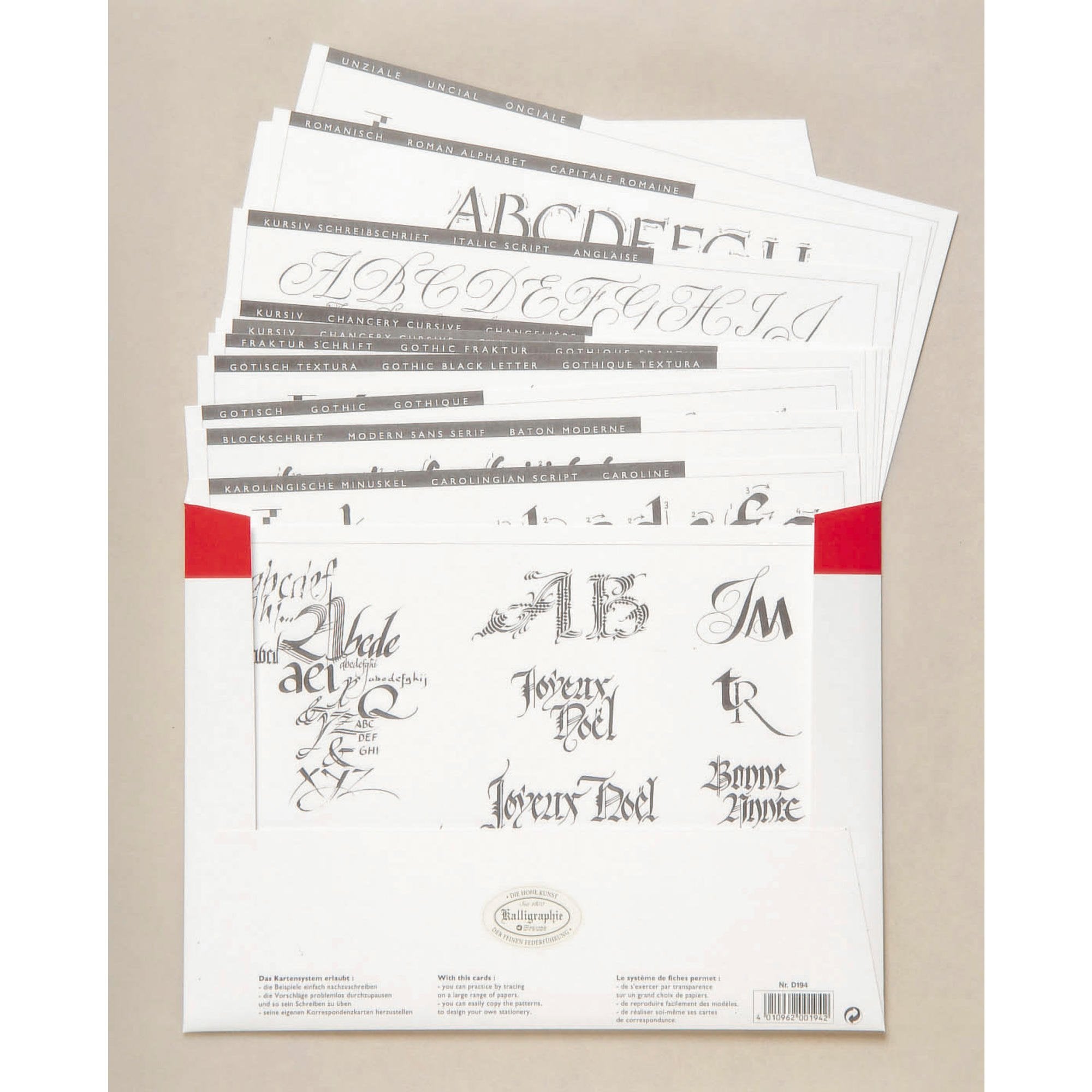 quaility cards from Brause. Nine classic lettering styles include Carolingian