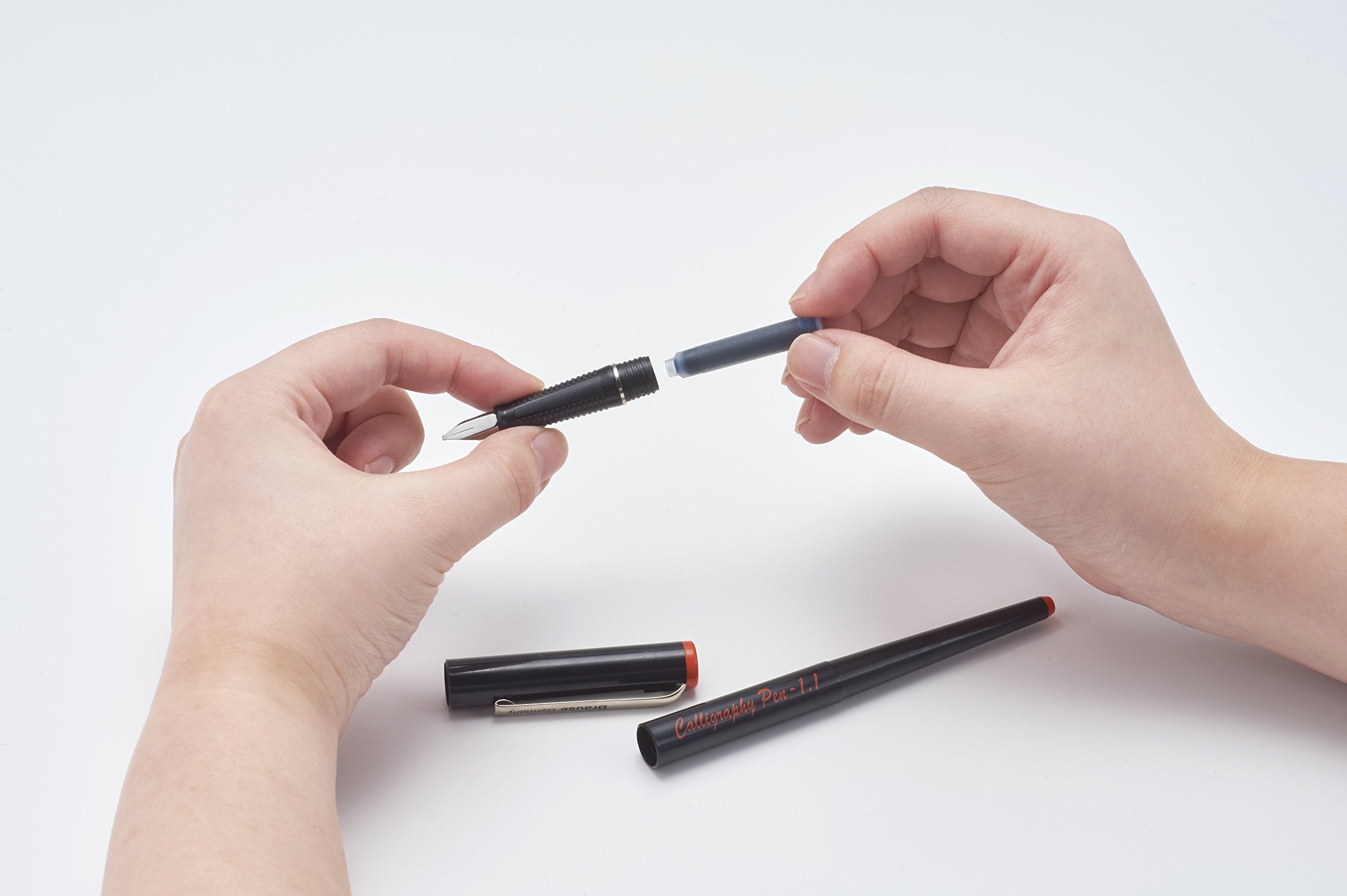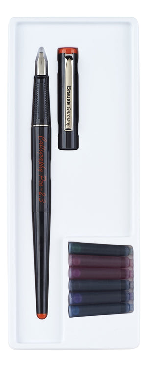 - Brause refillable, lightweight pen for caligraphy and lettering arts. The box includes 6 black ink cartridges and a snap-on cap with pocket clip. Choose from 3 stainless steel nib sizes: 1.1 mm, 1.5 mm, and 2.3 mm. Great writing instrument for students, professional calligraphers, and writers.