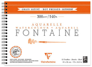 Clairefontaine Fontaine Watercolor Hot Pressed - Wirebound 12 Sheets - 7 1/2 x 10 1/4