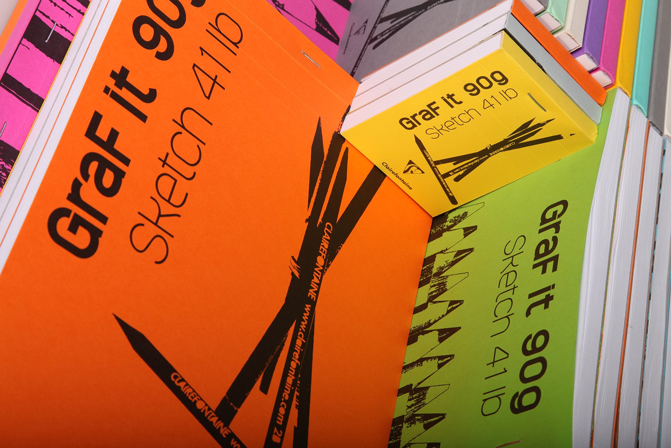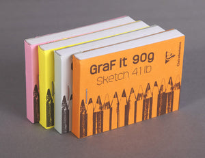 This modern collection of sketch pads with vibrant colors and unique cover designs is ideal for sketching on the go, art classes, or writing at home or work. They are both glued and stapled at the top so the cardstock front cover and cardboard back cover never fail to give you the proper support. The pads feature 80 sheets of 90g white Clairefontaine paper with micro-perforations for easy and clean removal.