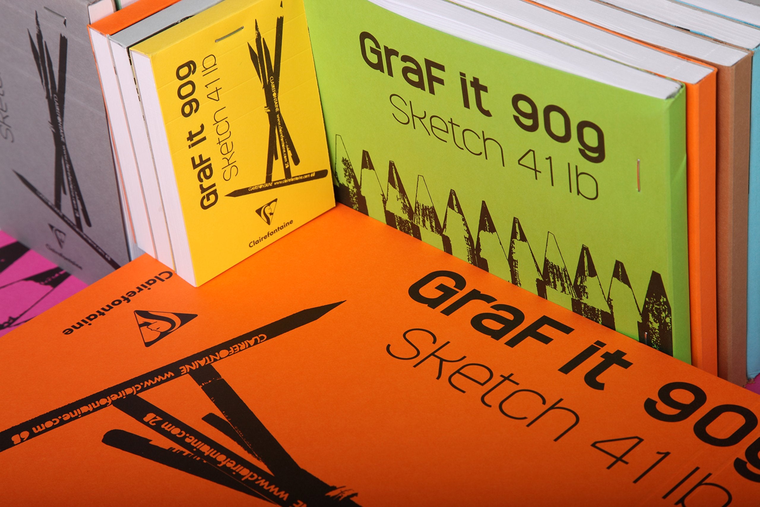 This modern collection of sketch pads with vibrant colors and unique cover designs is ideal for sketching on the go, art classes, or writing at home or work. They are both glued and stapled at the top so the cardstock front cover and cardboard back cover never fail to give you the proper support. The pads feature 80 sheets of 90g white Clairefontaine paper with micro-perforations for easy and clean removal.