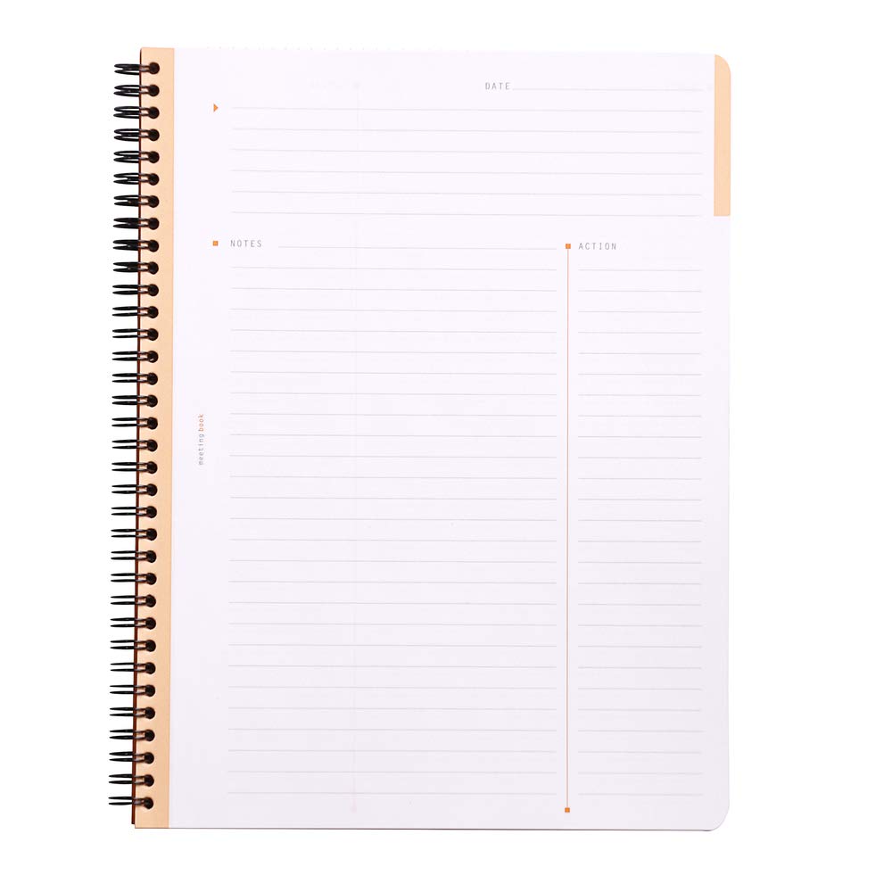 Designed with business in mind, this notebook is an all-in-one record of meeting discussions and decisions. Pages include space for action points and notes along the margins. Easy to review at one glance, it is the optimal tool for efficient meetings.
