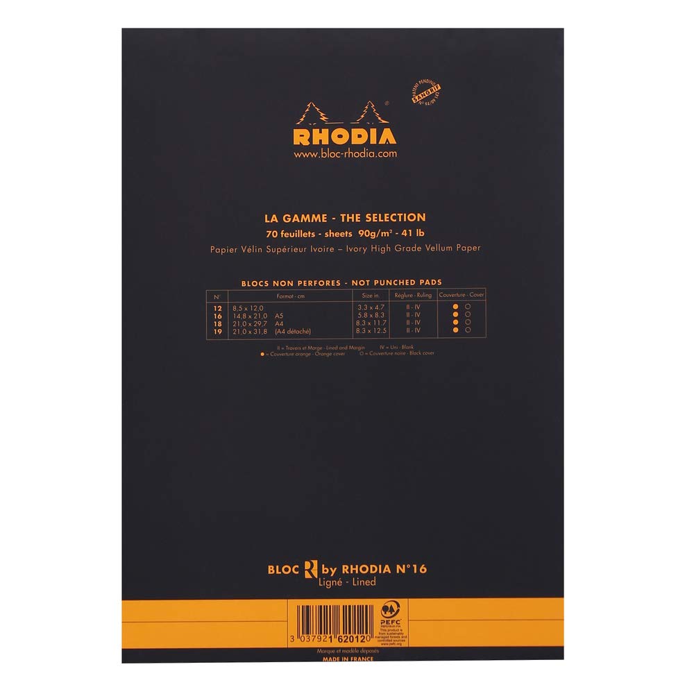 Rhodia "R" Premium Stapled Notepad - Lined 70 sheets - 6 x 8 1/4 - Black cover