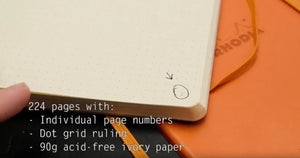 - BULLET NOTEBOOK FORMAT - 6-page table of contents, 224 numbered pages, dot grid, undated monthly and yearly calendars.