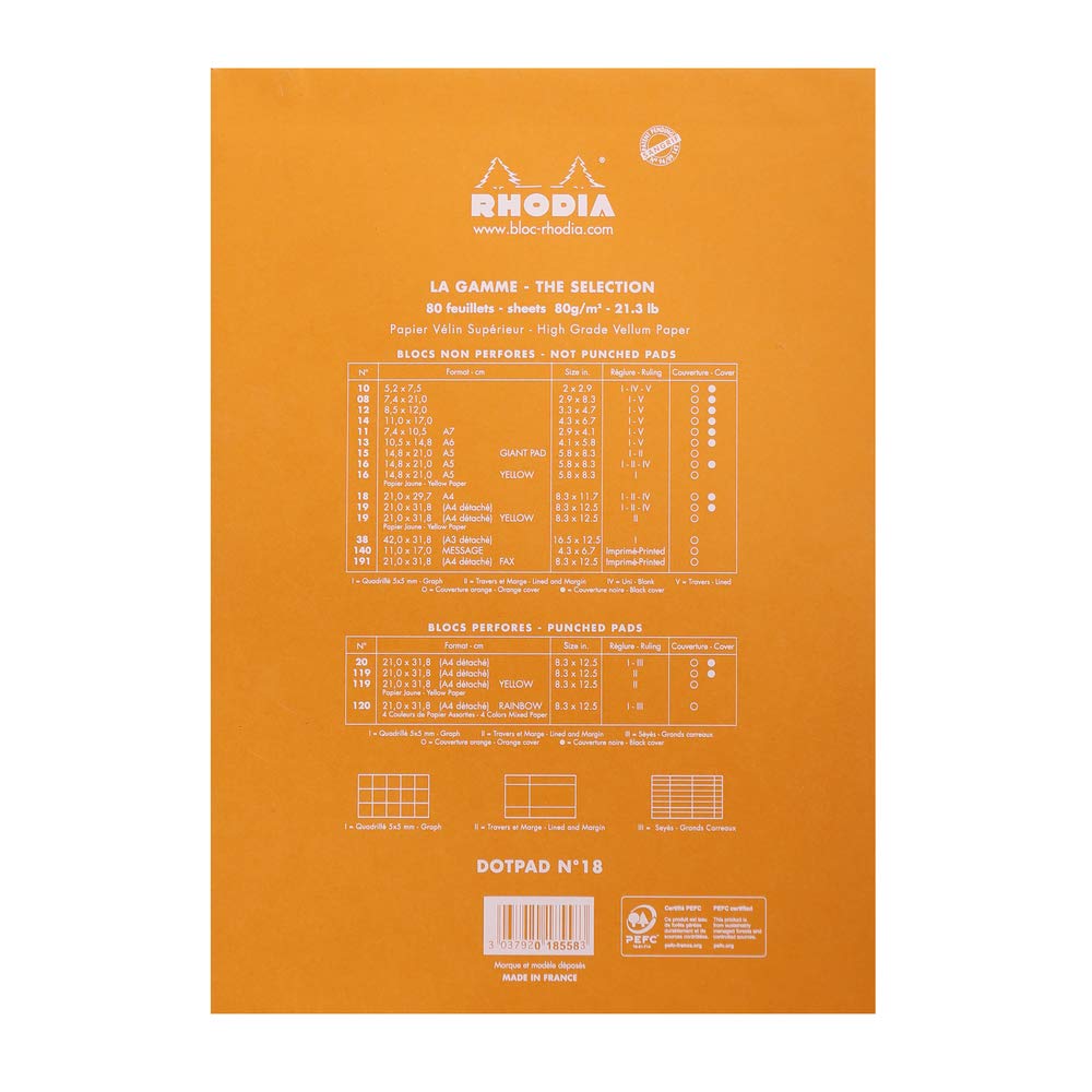 Rhodia Staplebound Notepad - Dot grid 80 sheets - 8 1/4 x 11 3/4 - Orange cover