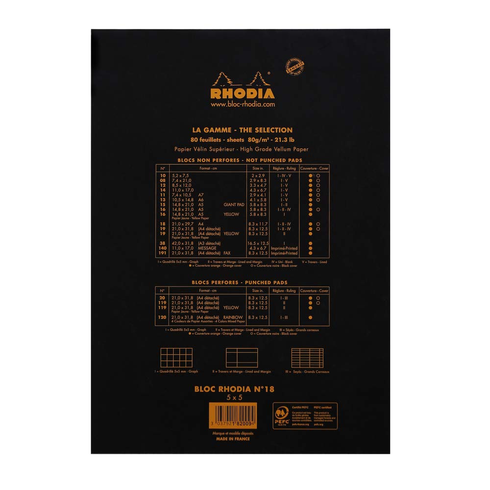 Rhodia Staplebound Notepad - Graph 80 sheets - 8 1/4 x 11 3/4 - Black cover