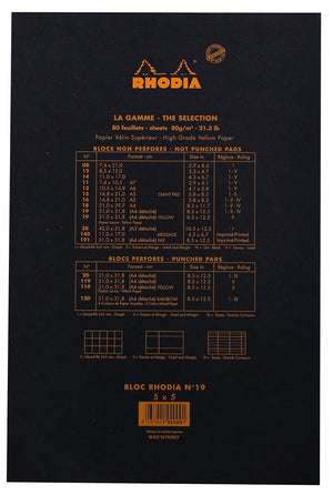 Rhodia Staplebound Notepad - Graph 80 sheets - 8 1/4 x 12 1/2 - Black cover
