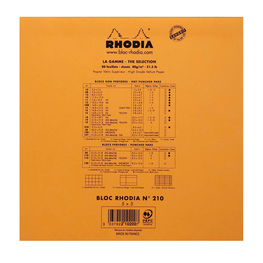 Rhodia Staplebound Notepad - Graph 80 sheets - 8 1/4 x 8 1/4 - Orange cover