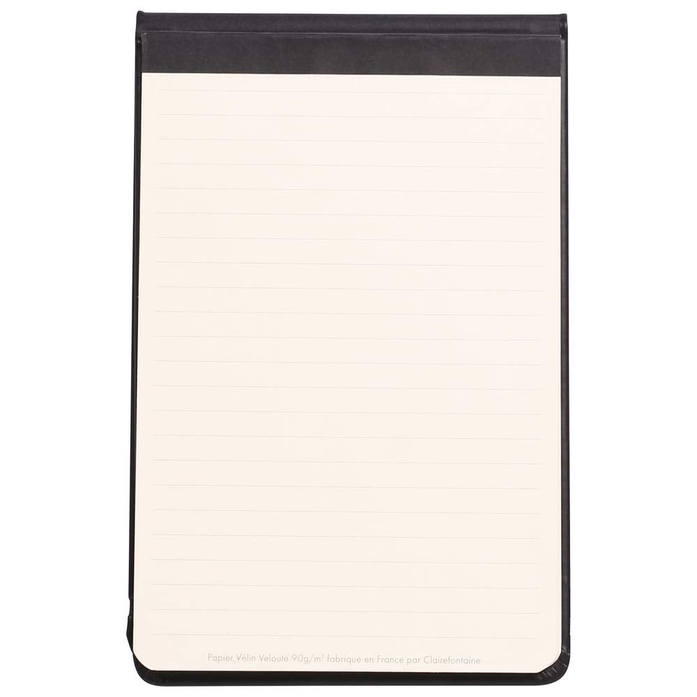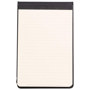 Flip-top reporter style notepad with recessed elastic closure. Available in lined or dot grid pages.