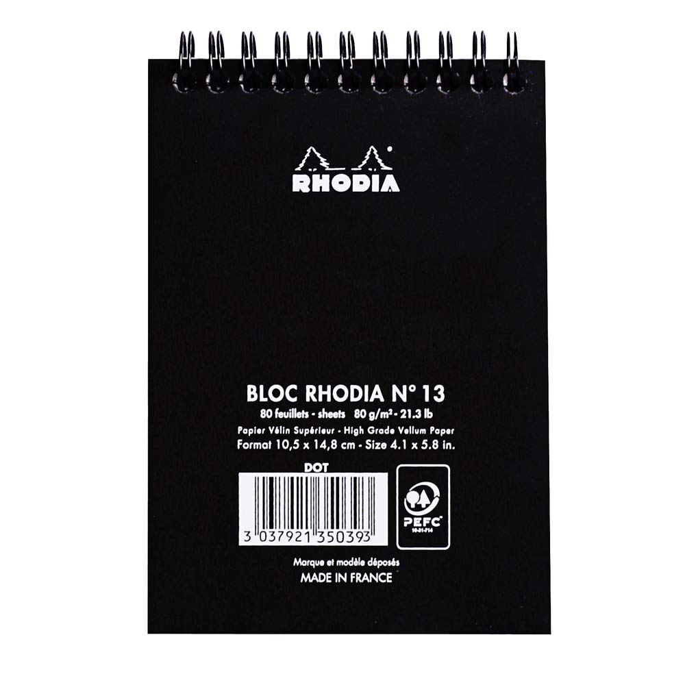 Rhodia Wirebound Notepad - Dot grid 80 sheets - 4 x 6 - Black cover
