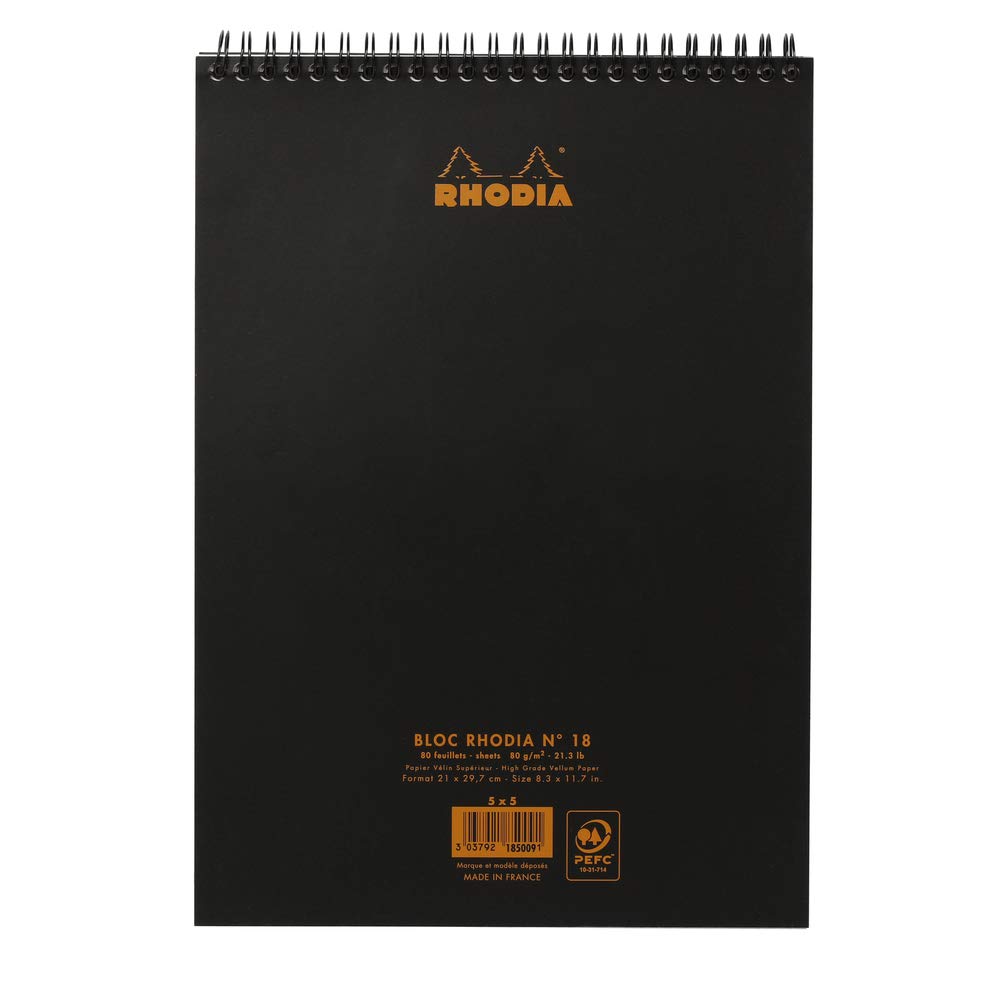 Rhodia Wirebound Notepad - Graph 80 sheets - 8 1/4 x 11 3/4 - Black cover