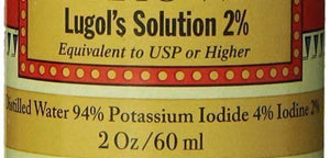 Equivalent to USP or Higher 2 oz Dropper Bottle Calculating Number of MG's of Iodine and Iodide per Drop of LUGOL'S 2%: Each VERTICAL "metric" drop (= 1/20 ml) is approximately 1.0 mg of iodine and 2.0 mg of potassium iodide. The Iodide portion of Potassium Iodide is about 75% so that is 1.5 mg. Therefore the total Iodine plus Iodide is 1.0 + 1.5 = 2.5 mg and 2 drops is about 5.0 mg's of iodine/iodide (2.0 mg iodine, 3.0 mg iodide). Compared to iodine and potassium iodide tablets, J.CROW'S Lugol's Solution offers big savings. Approximately 1200 vertical drops per 2 oz. container. To use as a water purifier add 3-6 drops per liter of water. Made from premium ingredients, the iodine used in J.CROW'S Lugol's Solution is derived from mined crystals from 320 million year old natural brine deposits two miles beneath the earth's surface in Western USA (one of the few places in the world where such deposits exist). Not made from shellfish. The water used is distilled, pure, New Hampshire spring water. Always fresh. Does not expire. Store at room temperature out of direct sunlight. No need to refrigerate. Be safe. Accept no substitutes. Keep J.CROW'S Lugol's Solution of Iodine on hand. Trusted Original Since 1829. Low Heavy Metal Verified. USA Sourced.