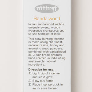 the temples of India. Nitiraj Platinum Natural SANDALWOOD incense is made in
