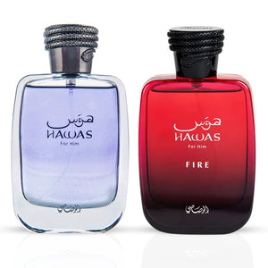RASASI Hawas For Him & Hawas Fire BUNDLE EDP Sprays 100ML (3.4 OZ)