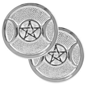 Altar Tile Silver Plated Round - 2 Pack - 3 Inches (Triple Moon Pentagram)