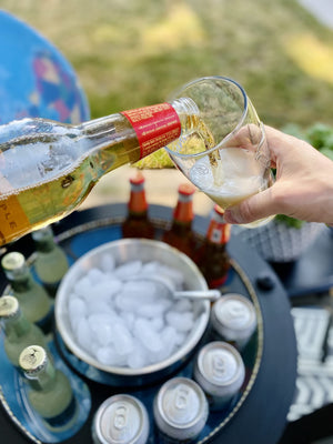 - Sturdy metal stand has bottom shelf with an additional storage for glasses and bottles