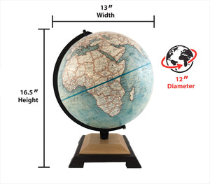 The Replogle Northampton 12-inch Blue Ocean Raised Relief World Globe features a classic and bold design. This wonderful globe features the latest up to date Replogle cartography in executive blue ocean parchment colors. It features a stepped natural finish two-tone base and a calibrated black finished die-cast semi-meridian. The 12" diameter globe features raised relief embossing which reveals the earth's main mountain ranges in a three dimensional way. The Northampton is not only beautiful but educational with all up to date political borders and place names. You will appreciate the way this affordable world globe takes center stage and is the perfect accompaniment to just about any decor.