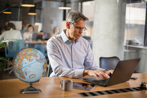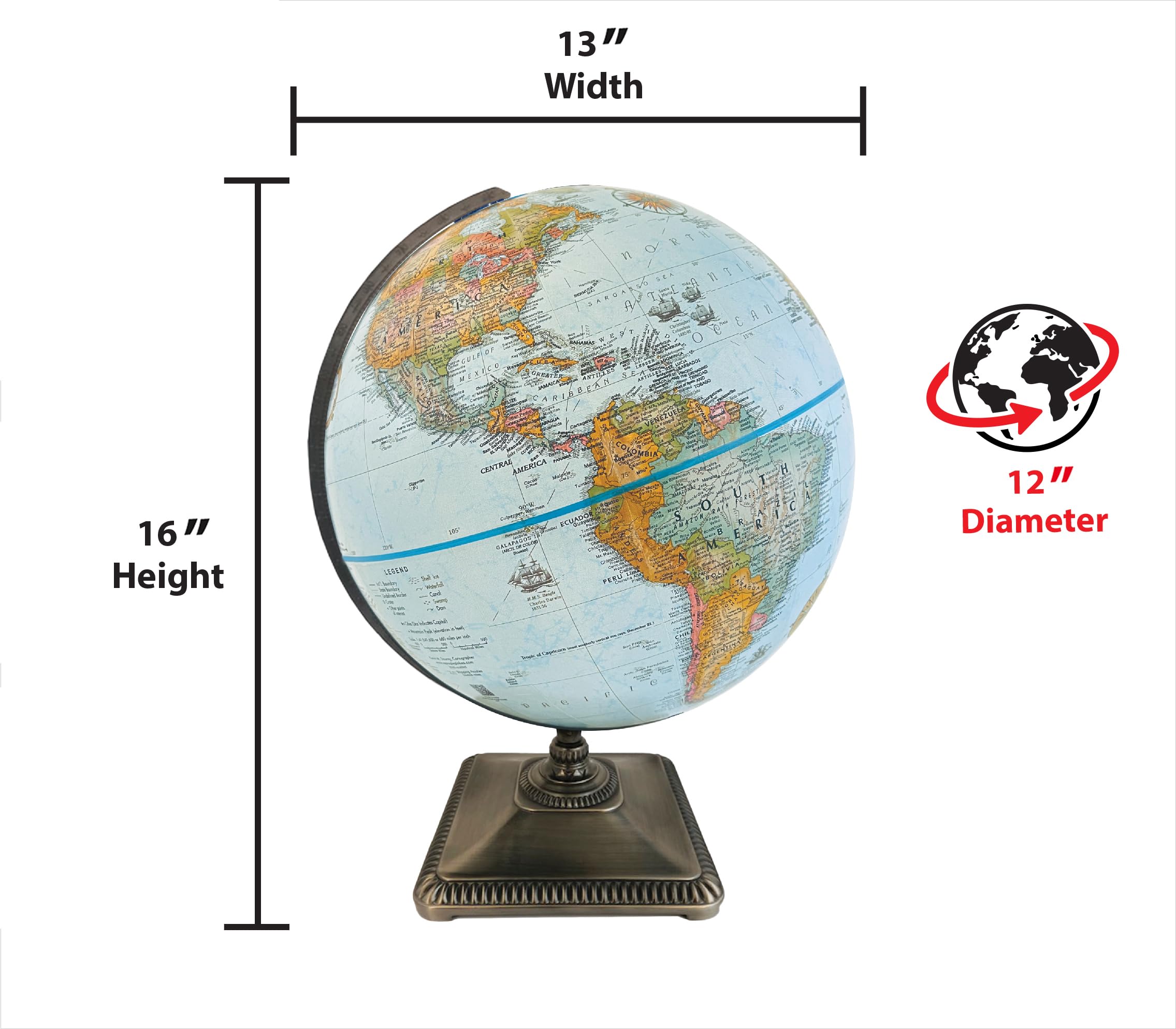 The 12 Replogle Zurich Canvas 12 Blue Ocean World Globe is both unique and beautiful. This decorative world globe features a sturdy die-cast pewter colored plated square base that has ornate trimming at the top and bottom of the base. The numbered pewter colored plated die-cast semi-meridian is the perfect match to the base and complement to the 12 canvas blue ocean raised relief globe ball. The look and feel of the canvas globe ball makes this globe unique from any other globe on the market. Also, the up to date accuracy makes for the perfect combination of form and functionality. Using old world techniques to manufacture, the Zurich globe incorporates a textured, durable canvas material. This beautiful globe is both a decorative and purposeful globe for the home and office.